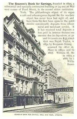 - ^ Seamen's Bank for Savings (N.Y.) (1938). Wall Street, 1880. Seamen's Bank for Savings. Retrieved 8 November 2023.
