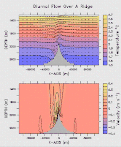 Seamounts are exceptionally important to their biome ecologically, but their role in their environment is poorly understood. Because they project out above the surrounding sea floor, they disturb standard water flow, causing eddies and associated hydrological phenomena that ultimately result in water movement in an otherwise still ocean bottom. Currents have been measured at up to 0.9 knots, or 48 centimeters per second. Because of this upwelling seamounts often carry above-average plankton populations, seamounts are thus centers where the fish that feed on them aggregate, in turn falling prey to further predation, making seamounts important biological hotspots.[5]