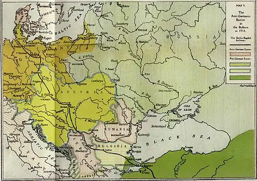 An unusually vast and, according to Boia, naïve project was sketched by the Bessarabian-born Nour, who claimed that, even if granted a military victory, Austria-Hungary would still crumble into "developed nations". Nour was confident that, with the return of peace, Romania would still have an option to annex its Austrian irredenta: Transylvania, Bukovina, the Banat, Crișana and Maramureș.[99] He speculated that a late entry into the war could also bring Romania possession of Bessarabia, large swathes of Ukraine, and the Odessa harbor; and even that, once victorious against the Entente, the Central Powers would award her an extra-European colonial empire.[100]