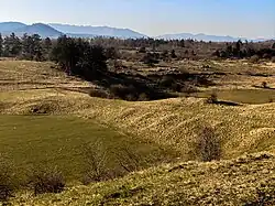 The Pivka seasonal lakes are a group of 17 seasonal lakes; the best-known are Lake Petelinje and Lake Palčje, which is the biggest of them at about 1.9 square kilometres (0.73 sq mi).[1][2] They are all located in Pivka Basin, Inner Carniola, Slovenia.[1] Lake Jeredovce, the northernmost lake, is in Municipality of Postojna, 10 of them (Krajnikov dol, Lake Petelinje, Lake Radohovo, Lake Klenik, Lake Palčje, Lake Parje, Big and Little Lake Drskovče, and Big and Little Lake Zagorje) are in Municipality of Pivka and the southernmost 6 (Kljun Pond, Lake Kalec, Lake behind Kalec (Veliki dol), Lake Bač, Lake Lan, and Lake Šembije) are in the Municipality of Ilirska Bistrica, all of them are located at elevations between 549 metres (1,801 ft) and 570 metres (1,870 ft).[2] There are also two areas (polje) that are only inundated during intense floods, so they are not officially considered among the Pivka seasonal lakes.