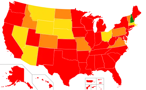 Thirty-four states, the District of Columbia, American Samoa, Guam, the Northern Mariana Islands, Puerto Rico and the U.S. Virgin Islands have primary enforcement laws for front seats.[2][3]