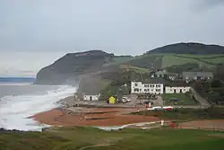Seatown comprises a small number of houses, a holiday park, some holiday cottages and a pub. The small River Winniford or Wynreford[1] runs into the sea here. Seatown beach is popular with fossil collectors, with rock of Late Jurassic/Early Cretaceous. The beach is privately owned; access to it is free, but there is a charge for car parking.