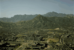 From Kwang Who Moon Circle a broad and, in peacetime, imposingly beautiful, modern boulevard also named Kwang Who Moon runs north 0.5 miles (0.80 km), terminating in front of the Capitol. After the tanks had reduced the barricade at Kwang Who Moon Circle, G Company, 5th Marines, advanced without opposition down the boulevard to the Capitol. The company had possession of the building at 15:08, and immediately thereafter struck the North Korean flags flying from the flag poles on either side of the Court of Lions in front of the building and raised in their place the American flag.[3]: 537