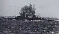 - ^ Llewellyn, p. 43: "The shell hit the starboard side of the Air Defense position, putting it out of action, also W/T and radar. One officer and fourteen ratings were killed; one officer and four ratings were seriously wounded. Splinters from near misses killed one rating and caused superficial damage."