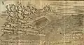 Paraguayan soldiers looting' allied base camp (here, sutlers' stores) at the Second Battle of Tuyutí, 3 November 1867. The flags denote the owners' nationalities e.g. Botica Italiana (José Ignacio Garmendia). -