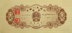 ¥0.01 | Same as 1955 edition notes, but without the serial number. | July 14, 1981 | July 1, 2003 | April 1, 2007 | Without serial number and printed in China | |||