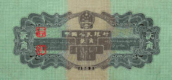 The second series of Renminbi banknotes was introduced on March 1, 1955 (but dated 1953). Together with the introduction of the second series, the decimal point was moved 4 places to the left. As a result, one first series ¥10,000 note is equivalent to one second series ¥1 note.
