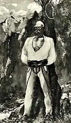 While serving in the Ottoman army, he was an artilleryman; he had managed to seize Turkish cannons and placed them in front of the hill of the village of Koshare. Along with several other artillerymen, Sefë built two catapults that hit Dervish Pasha's army from behind, enabling fighters like Mic Sokoli to attack the positions of the Ottoman cannons.[5] After Mic Sokoli sacrificed himself by pressing his body towards a Turkish cannon, Sefë Qorri was seriously wounded in the leg and in one hand. He was captured alive by the Ottoman Turks and a military trial led by Dervish Pasha quickly sentenced him to death; he was hung on a tree. The Ottomans warned Sefë's family that there would be consequences if they tried to take his body down before 7 days had passed. During the night, three days past his hanging, his nephews - Asllan and Shaban Emini from the neighbourhood of Hysiqi in Shtime - removed his body from the rope and buried their uncle in a secret location.[6] Afterwards, they contacted their other uncles and showed them where they had buried him. He was given the title of Sefë Kosova for his bravery during his lifetime.[3][7][1]