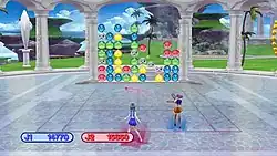 The gameplay in Sega Superstars Tennis is similar to Sega's Virtua Tennis series, with characters able to perform techniques such as lob shots and drop shots. Characters each have different statistics and proficiency in specific areas, such as power or control. Each character also has their own unique "Superstar State", a special ability that can be activated once an accompanying meter is filled. The effects of a Superstar State vary depending on the character; for example, Sonic transforms to Super Sonic and causes the ball to zig-zag when hit, while Gilius summons thunderbolts that can temporarily stun opponents. The game features ten courts themed after various Sega games, such as Green Hill Zone from Sonic the Hedgehog and Shibuya Downtown from Jet Set Radio.[3]