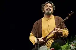 A setar (Persian: سهتار, pronounced [seˈt̪ʰɒːɾ]) (lit: "Three Strings") is a stringed instrument, a type of lute used in Persian traditional music, played solo or accompanying voice.[1] It is a member of the tanbur family of long-necked lutes with a range of more than two and a half octaves.[1] Originally a three stringed instrument, a fourth string was added by Mushtaq Ali Shah by the mid 19th century.[1] It is played with the index finger of the right hand.