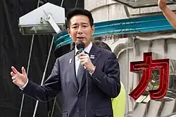 Seiji Maehara (前原 誠司, Maehara Seiji; born 30 April 1962) is a Japanese politician who has been a member of the House of Representatives of Japan since 1993.[1] He founded and led the political party, Free Education for All, before its merger into Nippon Ishin no Kai on 3 October 2024.[2] He has been co-leader of Ishin, serving alongside Osaka Governor Hirofumi Yoshimura since December 2024.