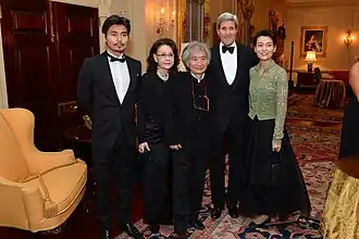 Ozawa (center) and his family with US secretary of state John Kerry at the 2015 Kennedy Centers Honor dinner in Washington, D.C.