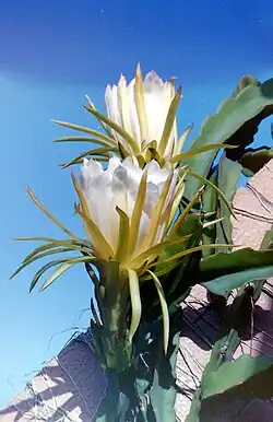 - ^ "Selenicereus undatus (Belle-Of-The-Night, Cinderella Plant, Dragon Fruit, Dragon Fruit Tree, Honolulu Queen, Jesus in the Cradle, Moonflower, Moonlight Cactus, Nightblooming Cactus, Night Blooming Cereus, Pitahya Plant, Pitaya, Queen of the Night, Red Pitaya, Strawberry-Pear) | North Carolina Extension Gardener Plant Toolbox".