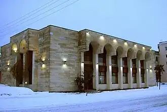 One of the important landmarks of the town constitutes the State Theater in Baroque Revival style (architect Vakhtang Gogoladze). The theatre is part of the Georgian cultural heritage and is under rehabilitation until 2018. The town is also famous for its neat streets with red brick houses. At proximity to the town, on the so-called "Archangel hill", the historical church built by the monk Alex Shushania (named Senakeli) in 1908 can be found. The church was one of the few churches which were not closed during Soviet times in Georgia. North of the town different kinds of spiritual and historical sights are situated: the Teklati Convent, the Shkhefi fortress and the Sakalandarishvilo fortification. Close to Senaki the ancient archeological and historical site of Nokalakevi (Archeopolis, Tsikhe-Goji) can also be found. According to the different sources (e.x. F. Diobua de Monpereoux) the mythical Colchian town "Aia" and then capital of Lazica (Georgian: ეგრისის სამეფო) "Tsikhegoji" was located there.[7]
