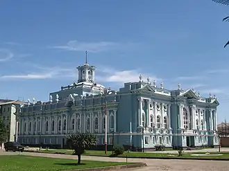According to Sulkhan-Saba Orbeliani the name "Senaki" (სენაკი) means "small room" or "chapel" in Georgian.[2] From 1935 to 1976 the town was called "Mikha Tskhakaya" in honor of the Georgian Bolshevik revolutionary leader Mikhail Tskhakaya.[3] In 1976 the name was simplified to "Tskhakaya". After 1989, the town was given back its original name.