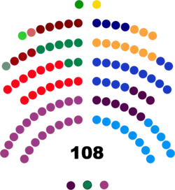 The Senate of the Republic of Colombia (Spanish: Senado de la República de Colombia) is the upper house of the Congress of Colombia, with the lower house being the Chamber of Representatives. The Senate has 108 members elected for concurrent (non-rotating) four-year terms.