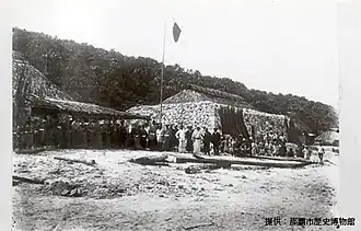 The Japanese central government incorporated the islands into Okinawa Prefecture in January 1895 while still fighting China in the First Sino-Japanese War.[36] Around 1900, Japanese entrepreneur Koga Tatsushirō (古賀 辰四郎) constructed a bonito fish processing plant on the islands, employing over 200 workers. The business failed around 1940 and the islands have remained deserted ever since.[46] In the 1970s, Koga Tatsushirō's son Zenji Koga and Zenji's wife Hanako sold four islets to the Kurihara family of Saitama Prefecture. Kunioki Kurihara[47] owned Uotsuri, Kita-Kojima, and Minami-Kojima. Kunioki's sister owned Kuba.[48]