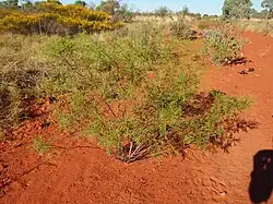 Senna glutinosa grows in arid shrubland in all mainland states of Australia and the Northern Territory, but not in Victoria. Subspecies chatelainiana in the central west of Western Australia,[9][17] and subsp. glutinosa from the north-west of Western Australia to the Northern Territory and north-western South Australia.[11][18] Subspecies × luerssenii occurs from the central coast of Western Australia to near the Northern Territory border,[13][19] and subsp. pruinosa is found from north-western Western Australia to far northern South Australia, and far western Queensland and New South Wales.[15][16][20]