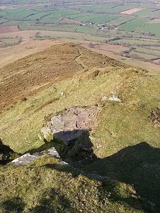 ![]() Mynydd Troed, the upper part of the hill consisting of the Senni Beds Formation | |