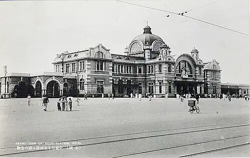 The old Seoul Station (Korean: 구서울역사; Hanja: 舊서울驛舍, literally meaning "old Seoul Station building"), also known as "Culture Station Seoul 284" (Korean: 문화역서울 284), originally named Keijō (Gyeongseong) station and designed by Tsukamoto Yasushi of Tokyo Imperial University, was finished in November 1925. This red brick building, designed in an eclectic style, features a Byzantine-style central dome and a centralized and symmetrical layout.[13] The floor of the Central Hall on the ground floor was covered with granite and the walls were covered with man-made stone. The wooden floor inside the building's VIP Lounge was covered with birch wood and a western style restaurant was located on the 2nd floor.[12]