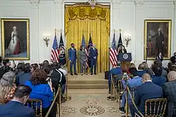 On September 26, Mayor Woodfin and Representative Terri Sewell, who represents the area, visited the White House for an executive order signing ceremony with President Joe Biden and Vice President Kamala Harris. The executive order is designed to target trigger switches by creating a task force which will issue a report in 90 days about the federal government's capacity to detect and seize the devices, as well as an effort to address the trauma caused by active shooter drills in schools. Representative Sewell said of trigger switches that, "Machine gun converters like the one used in Saturday night’s mass shooting are designed for one purpose — mass killing."[25][26]