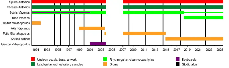 Session vocalist Natalie Rassoulis joined for The Ophidian Wheel (1997) and again for A Fallen Temple (1998).[4]