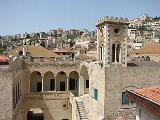 In 1857,[3] a portico was built for the Seraya,[2] amid other renovations.[3] Later, in the early 20th century, a watchtower, built in the European Renaissance style, was added to the building. With the establishment of the Nazareth Municipal Council in 1877, the Seraya served as the council's headquarters until 1991. Prior to that it served as the residence of the local governor of Nazareth and its subdistrict.[2] It is currently in disuse, but the city plans to turn the Seraya into a museum.[2][1]