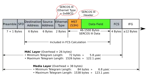 All Sercos III telegrams conform to the IEEE 802.3 and ISO/IEC 8802-3 MAC (media access control) frame format.