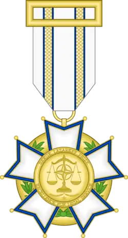 The Serge Lazareff Medal was created in 2017 to recognize all those people who, both engaged with NATO and from outside the organisation, for their outstanding contribution to NATO ACO Office of Legal Affairs,[1][2] as well as all those who have contributed to supporting or develop knowledge of their legal position.[3][4] The medal is named in honor of the prestigious jurist, academician and NATO lawyer, Serge Lazareff, who played a significant role in developing the NATO Status of Forces Agreement.[5]