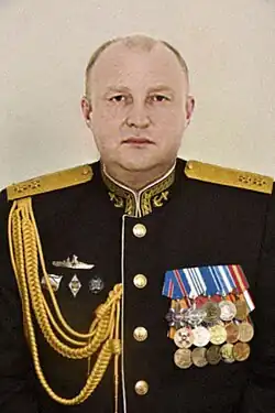 Sergei Gavrilovich Alyokminsky (Russian: Сергей Гаврилович Алёкминский; born 26 September 1961) is an officer of the Russian Navy. He currently holds the rank of Vice-Admiral, and served as deputy commander of the Eastern Military District between 2014 and 2016, and as commander of the Caspian Flotilla from 2010 to 2014.