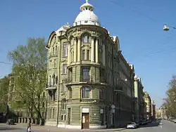 Sergei Grigoryevich Ginger (Russian: Сергей Григорьевич Гингер) (1870 - 1937) was an Imperial Russian and Soviet architect born in what is now Moldova. He designed several buildings in his native Chișinău and in Saint Petersburg, where he was a member of the St. Petersburg Society of Architects. His work is representative of the Art Nouveau and neoclassical styles.[1] Ginger was noted in particular for his residential buildings that occupy important sectors in the historic center of St. Petersburg and its suburbs, including Kolobov House and 53 Kamennoostrovsky Avenue, although in his younger years he designed a number of major buildings in Chișinău, including the Kostyuzhenskoy Psychiatric Hospital (1894), and what is now Lyubavicheskaya Synagogue (1898).