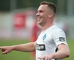 He announced his retirement on 10 July 2019.[4] On 17 February 2021, Krylia Sovetov announced that he will be registered as a club player again to play a farewell game at the home field.[5] He scored the last goal of a 6–0 victory over FC Krasnodar-2 on 8 May 2021, one minute after appearing as a substitute in the 83rd minute. Krylia Sovetov had secured their return to the Russian Premier League two games prior to that one.[6]