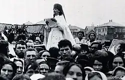 In 1909 Iliodor and Grigori Rasputin visited his village by train.[3] Iliodor began to wonder if Rasputin was a devil or a saint, but defended him against attacks in the press in 1910. In early 1911 Rasputin traveled to the Holy Land. On his way back he visited Tsaritsyn. Iliodor had been invited by the Tsar on 21 May, who asked him not to attack his ministers, but the revolutionaries and the Jews.[4] Five days later Iliodor was promoted and became archimandrite. In December 1911 Hermogenes and Iliodor came into conflict with Rasputin, who liked to touch and kiss and had almost free access to the Imperial family. After having been beaten by Hermogen,[5] in a monastery on Vasilyevsky Island, Rasputin complained to the Imperial couple.