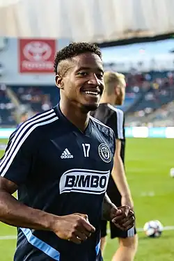 On 14 December 2018, signed with Philadelphia Union competing in Major League Soccer.[4] The signing was completed for approximately $500,000 transfer fee and as a TAM-level player.[5] After a slow start due to injuries, Santos scored his first two goals for the Union on May 5 versus New England Revolution in a 6–1 victory.[6][7] Santos would finish his first season with four goals and one assist.[8]