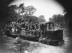 Australian soldiers on the railway journey from Badas to Seria in 1945