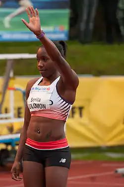 Serita Solomon (born 1 March 1990) is a British track and field athlete competing in the hurdles. She was the bronze medallist in the 60 metres hurdles at the European Athletics Indoor Championships in 2015.[1] Solomon holds a personal best of 12.87 seconds for the outdoor 100 metres hurdles and represented England in that event at the 2014 Commonwealth Games.