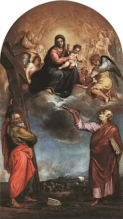 The Serravalle Altarpiece or Madonna and Child in Glory with Saint Andrew and Saint Peter is an oil on wood painting by Titian, from c. 1542–1553. It is, in the church of Santa Maria Nova in Serravalle, for which it was commissioned.