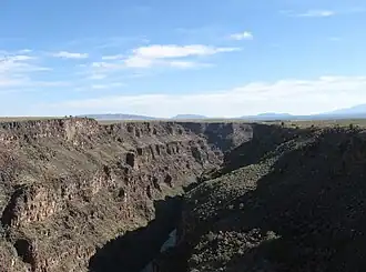 ![]() View of Servilleta Basalt forming rim of Rio Grande Gorge. | |