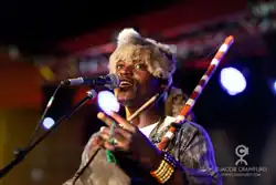 A member of Sotho Sounds reciting 'Difela' in 2011.