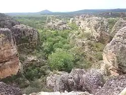 The Sete Cidades National Park is divided between the municipalities of Brasileira (26.21%) and Piracuruca (73.77%) in the state of Piauí. It has an area of 7,700 hectares (19,000 acres).[1] The park is surrounded by the 1,592,550 hectares (3,935,300 acres) Serra da Ibiapaba Environmental Protection Area, created in 1996.[2]