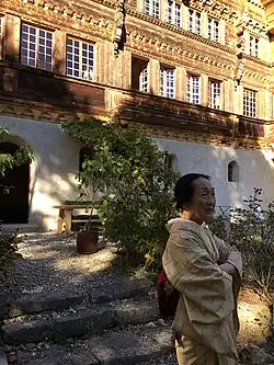 ![]() Comtesse Setsuko Klossowska de Rola in front of the Grand Chalet (garden side) | |