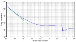 In the intermediate region between Stokes drag and Newtonian drag, there exists a transitional regime, where the analytical solution to the problem of a falling sphere becomes problematic. To solve this, empirical expressions are used to calculate drag in this region. One such empirical equation is that of Schiller and Naumann, and may be valid for :[3]