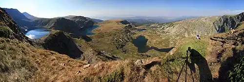 The Seven Rila Lakes (Bulgarian: Седемте рилски езера, romanized: Sedemte rilski ezera, pronounced [sɛdɛmˈtɛ ˈriɫski ɛzɛˈra]) are a group of glacial lakes, situated in the northwestern Rila Mountain in Bulgaria. Situated between 2,100 and 2,500 metres elevation above sea level, they are the most visited group of lakes in Bulgaria.