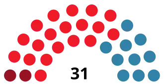 The City Council of Seville (Spanish: Ayuntamiento de Sevilla) was the top-tier administrative and governing body of the municipality of Seville, composed of the mayor, the government council and the elected plenary assembly.[1][2][3] Voting for the local assembly was on the basis of universal suffrage, which comprised all nationals over 18 years of age, registered in the municipality of Seville and in full enjoyment of their civil and political rights.