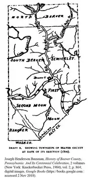 - ^ Joseph Henderson Bausman, History of Beaver County, Pennsylvania: And Its Centennial Celebration, 2 volumes (New York: Knickerbocker Press, 1904), vol. 2, p. 858; digital images, Google Books (https://books.google.com : accessed 2 Nov 2018).