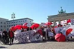 Red Umbrella Marches, sometimes referred to as Sex Worker Pride marches, began in 2001 as part of the 49th Venice Biennale of Art. The action was initiated by the Slovenian artist Tadej Pgacar and sex workers who created a living installation they titled Prostitute Pavilion.[7][8] Sex Worker Pride is observed on 14 September.