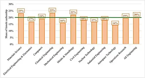- ^ Ghiasi, Gita; Larivière, Vincent; Sugimoto, Cassidy R. (2015-12-30). "On the Compliance of Women Engineers with a Gendered Scientific System". PLOS ONE. 10 (12): e0145931. Bibcode:2015PLoSO..1045931G. doi:10.1371/journal.pone.0145931. ISSN 1932-6203. PMC 4696668. PMID 26716831.