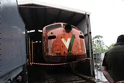 Out of Traffic, Overhaul[11] | B/G | To visit transfer to the Victorian Goldfields Railway in 2006 and Returned to traffic in mid April 2012. Loaned from Seymour Railway Heritage Centre. Returned to Seymour 24 January 2015 for major overhaul and awaiting test run. | ||