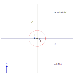 A sundial at a particular latitude in one hemisphere must be reversed for use at the opposite latitude in the other hemisphere.[8] A vertical direct south sundial in the Northern Hemisphere becomes a vertical direct north sundial in the Southern Hemisphere. To position a horizontal sundial correctly, one has to find true north or south. The same process can be used to do both.[9] The gnomon, set to the correct latitude, has to point to the true south in the Southern Hemisphere as in the Northern Hemisphere it has to point to the true north.[10] The hour numbers also run in opposite directions, so on a horizontal dial they run anticlockwise (US: counterclockwise) rather than clockwise.[11]