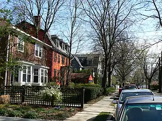 The Shady Hill Historic District is a historic district roughly bounded by Museum, Beacon and Holden, and Kirkland Streets, and Francis Avenue in Cambridge, Massachusetts. The district encompasses a residential area that is one of the city's most homogeneous neighborhoods of the second half of the 19th century. Located just east of the Harvard University campus, the area is characterized by large lot sizes and winding roads, with mature trees providing shade. The houses in the district are predominantly Queen Anne and Colonial Revival in character.[2]